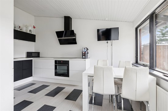 Først er der rækkehuset på Sankt Olavs Alle 94. Dette moderne hjem tilbyder 98 kvadratmeter fordelt på 4 værelser. Med en overskuelig grund på 249 kvadratmeter, giver huset mulighed for en overkommelig have.